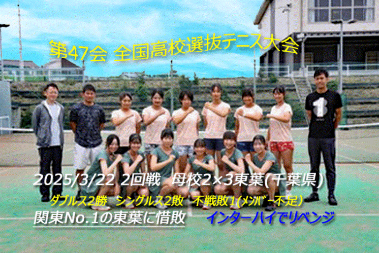 < 第47回全国高校選抜テニス大会 2回戦は関東No1の東葉に互角ながら不戦敗で惜敗 残念、残念・・・ インターハイで百花繚乱の華を魅せます ガンバレ泗商・・・!! >